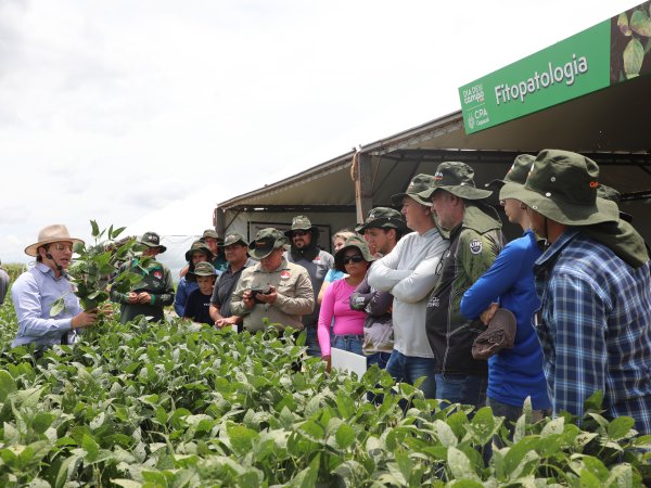 Outro assunto que chamou atenção dos participantes foi o painel de cultivares de soja recomendadas pelo CPA, que são apresentadas com duas datas de semeadura, adubação em quantidades de acordo com a época e orientação de acordo com a região plantada, também foram apresentados manejos de doença e controle de pragas. "Apresentamos um demonstrativo com as épocas de semeadura diferentes com o mesmo manejo, onde fica visível a diferença de comportamento de cada planta, para mostrar a importância de se atentar as recomendações do CPA, de acordo com testes feitos na prática", conta o engenheiro agrônomo André Luiz Borsoi.